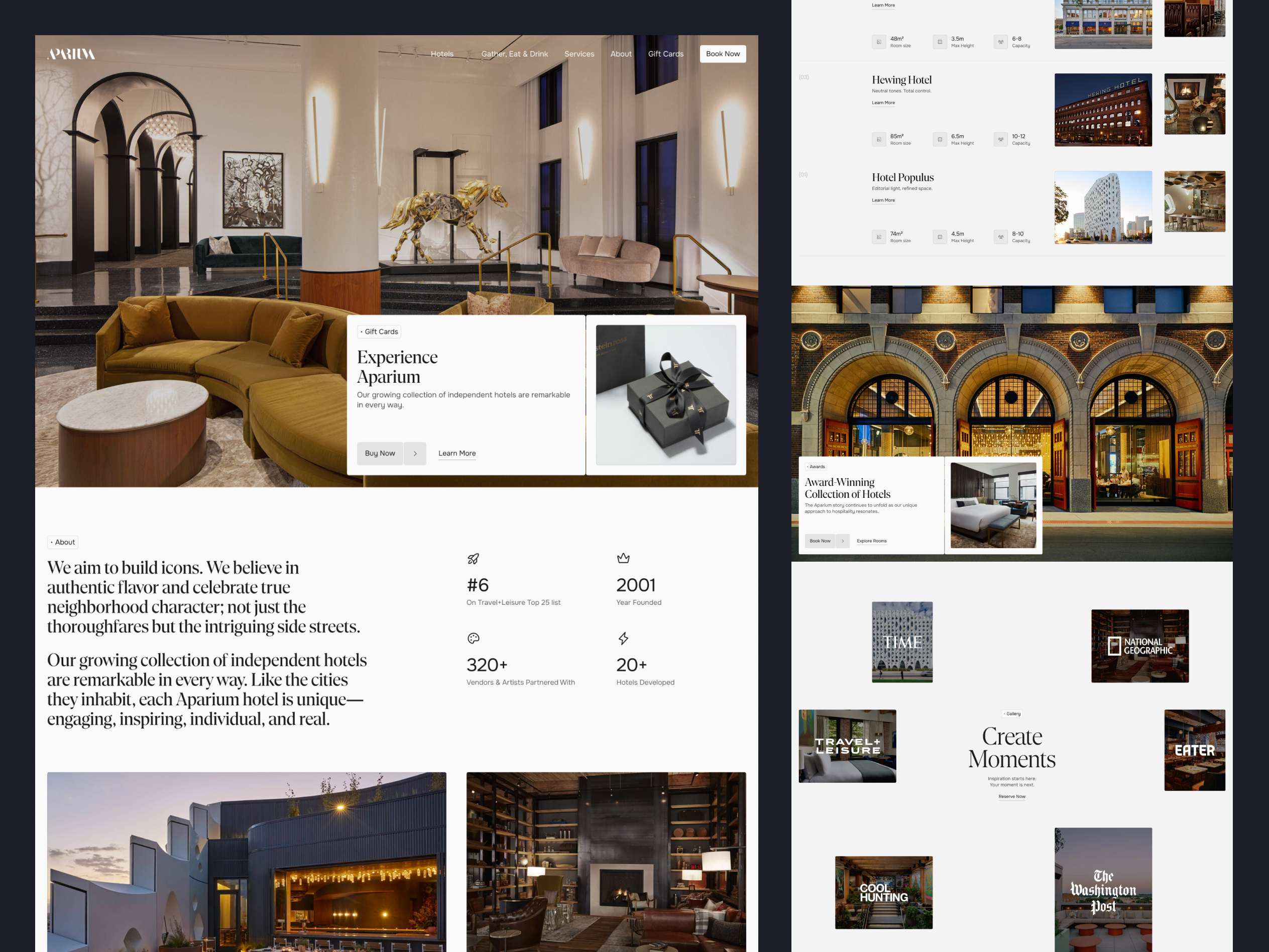 Every hotel had its own brand guidelines, tone, and personality. Designing each site separately was slow and expensive. Yet Aparium didn’t want a cookie-cutter template. The challenge was to find balance; a shared structure that made production faster, but still gave each hotel creative freedom.
