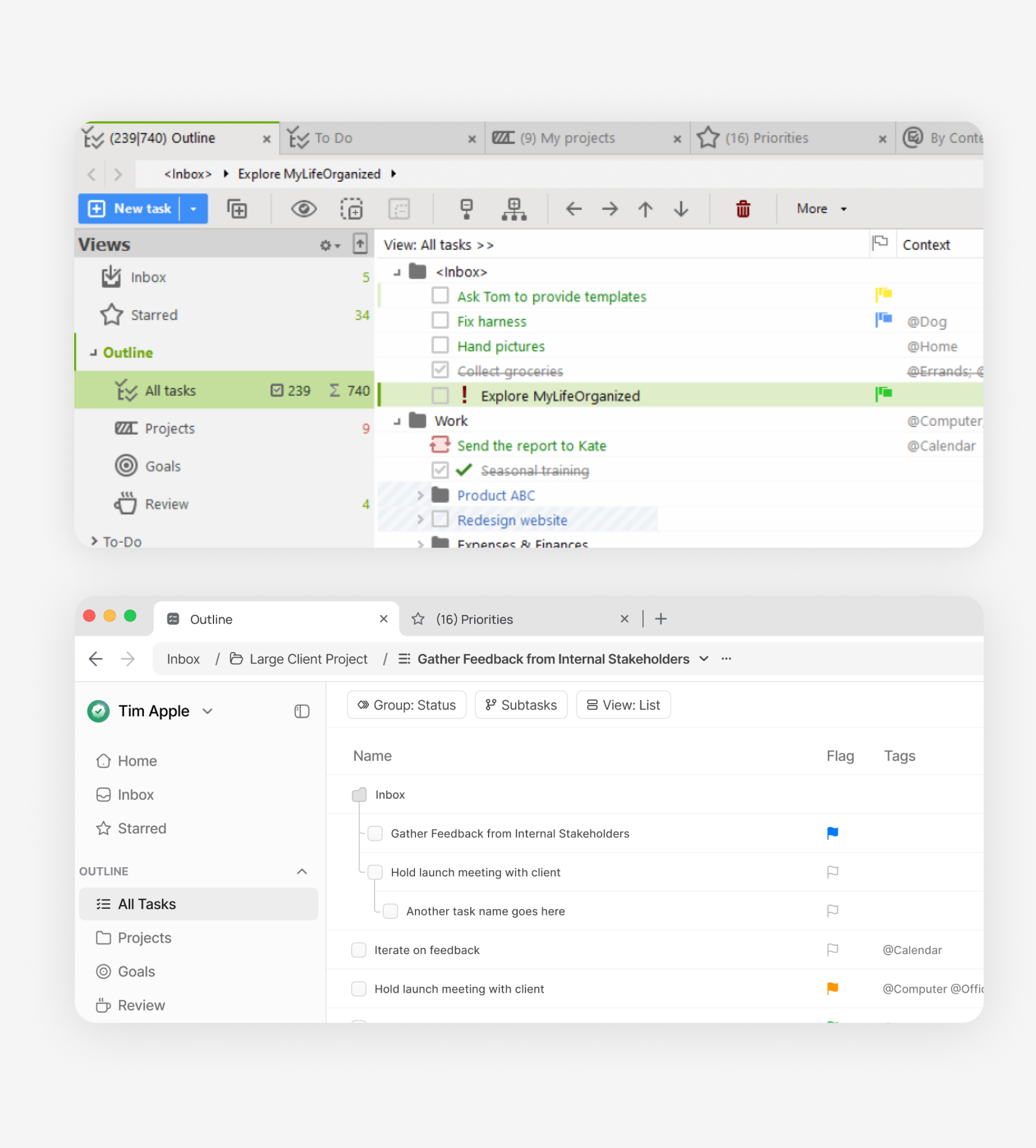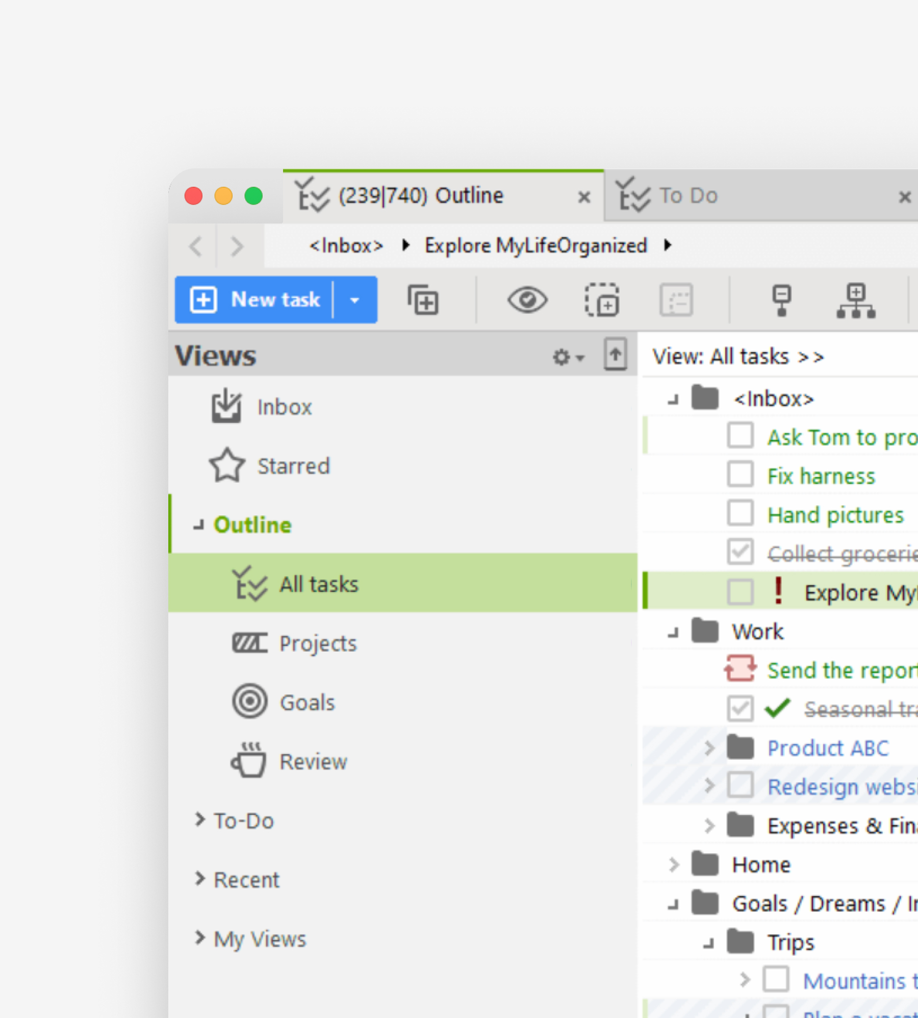 What makes MyLifeOrganized unique is its unlimited hierarchy of tasks and subtasks. This checklist software allows you to create, navigate, and focus on tasks with endless levels of detail. You organize everything in a hierarchical list, and the program automatically generates a sorted checklist based on your input.